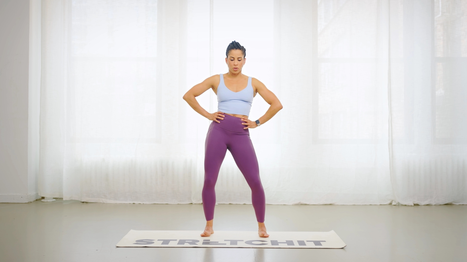 • Keep your hands on your hips.
